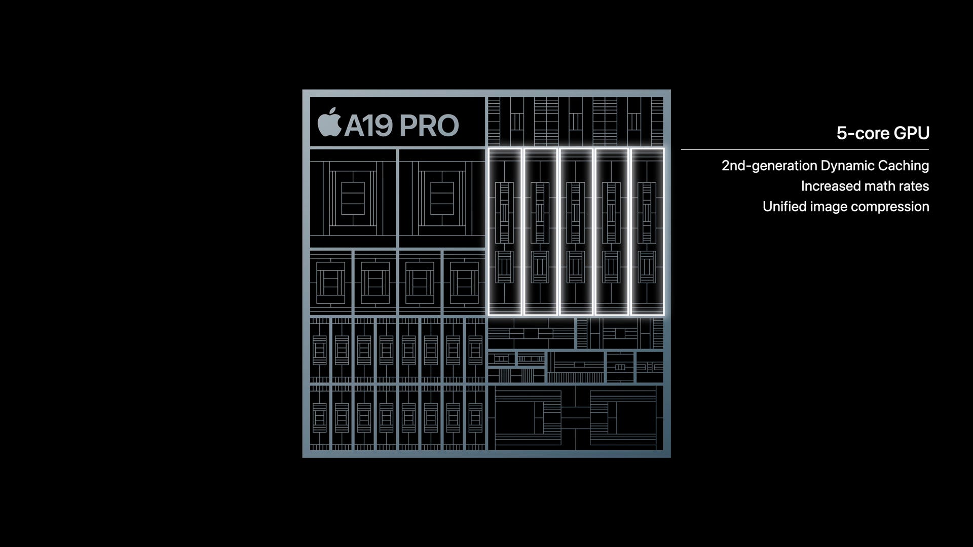Apple has also introduced what they’re calling “unified image compression” to the GPU architecture, but with no further details. All major GPUs already make significant use of image/buffer compression to save on cache pressure and memory bandwidth, so it’s largely a question of what “unified” means in this context. Presumably, Apple has made further changes so that all of its units within its GPU can ingest compressed buffers.