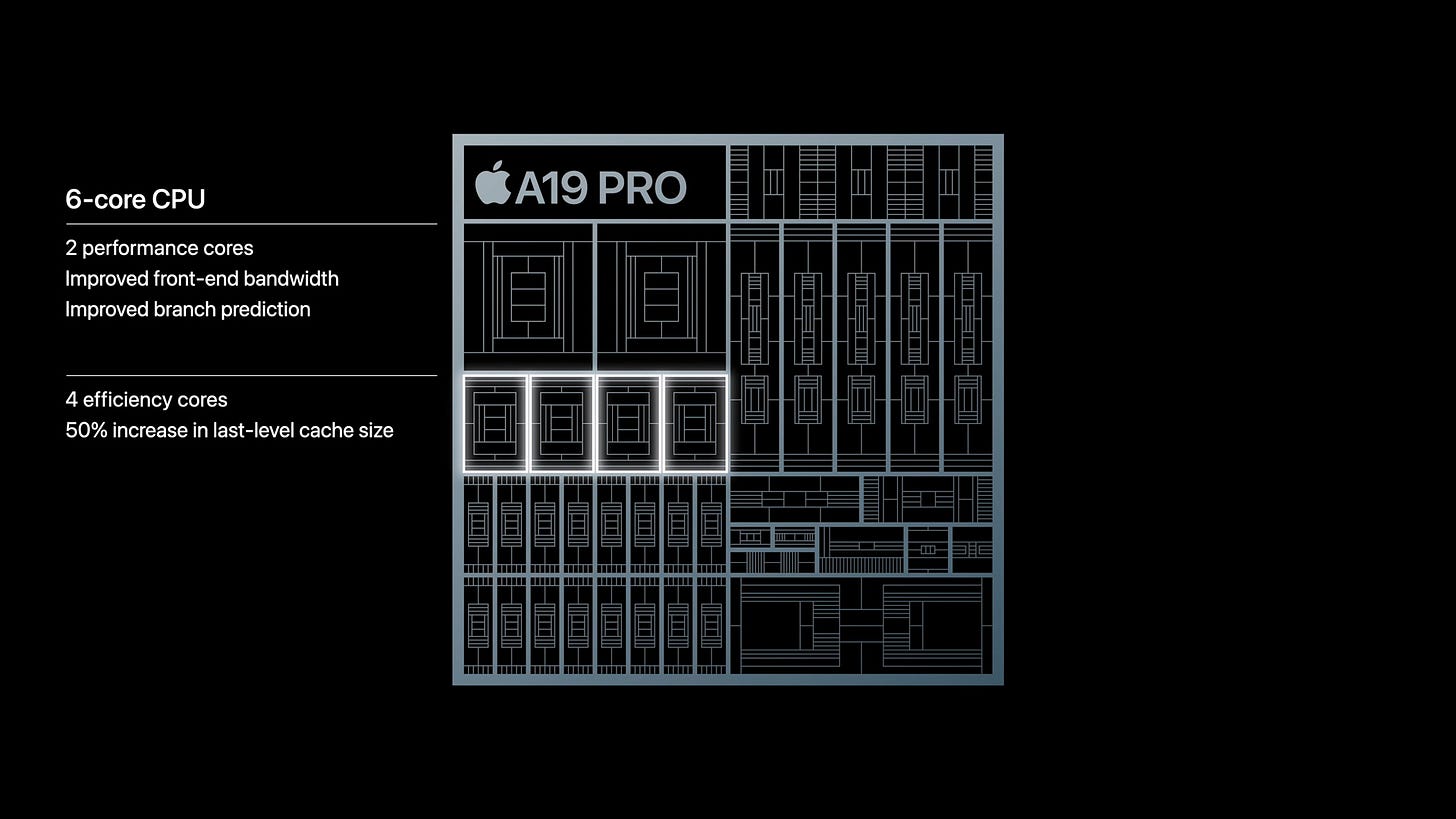 However, in the same breath, they have made the unusual claim that they have increased the size of the last level cache (LLC) on the A19 Pro by 50%. As nothing that goes into an Apple keynote isn’t vetted by less than half a dozen people, I’m going to assume there’s no error here – that is, someone didn’t mean to say L2 cache – and rather that Apple opted to comingle any discussion of the entire chip’s LLC into this segment of the presentation. In which case, that means that Apple has increased the LLC from 24MB on the A18 Pro to 36MB on the A19 Pro.