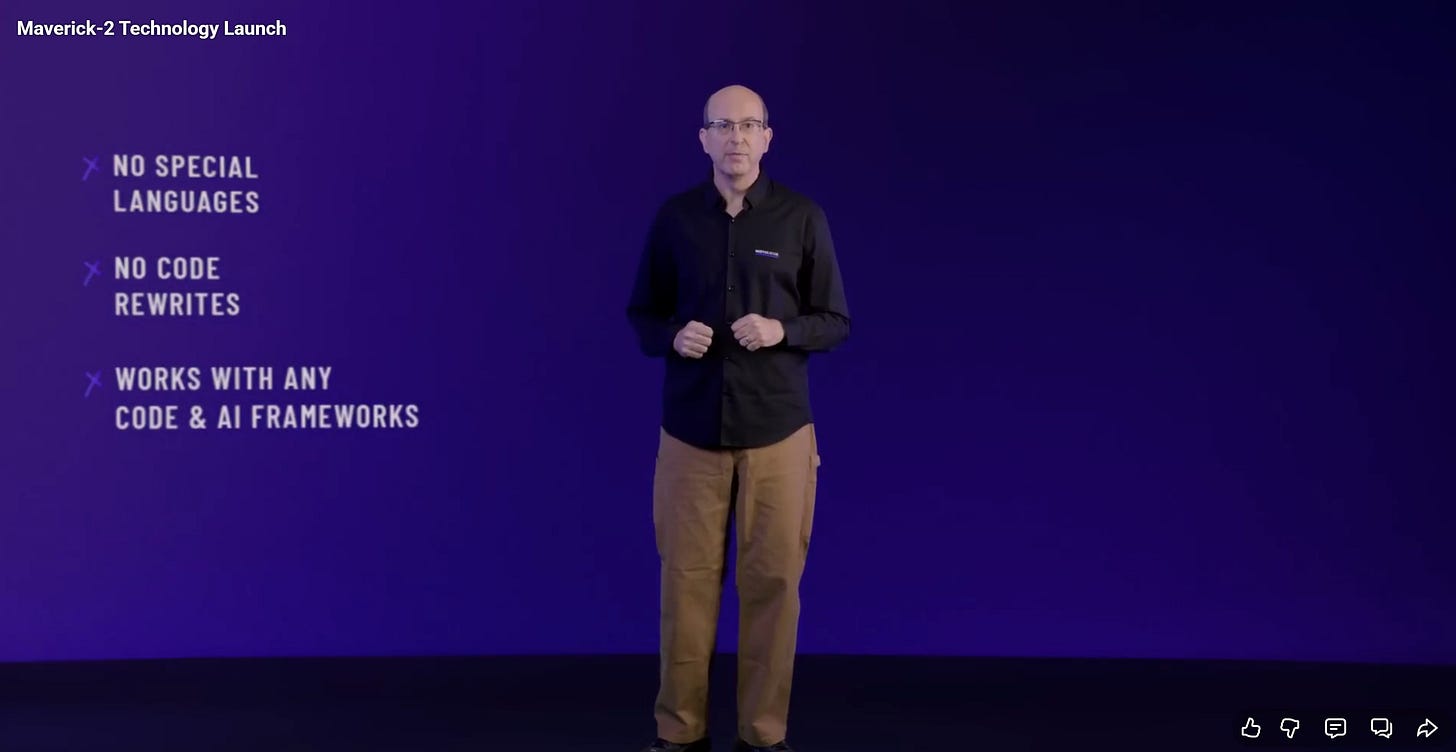 Ian: One trend in this industry is that chip packages are getting bigger. The advent of chiplets means more silicon and ultimately more compute, more power. I noticed that Maverick 2 has that chiplet infrastructure. Is there anything unique in that chip-to-chip boundary or stuff that has to be considered at runtime?