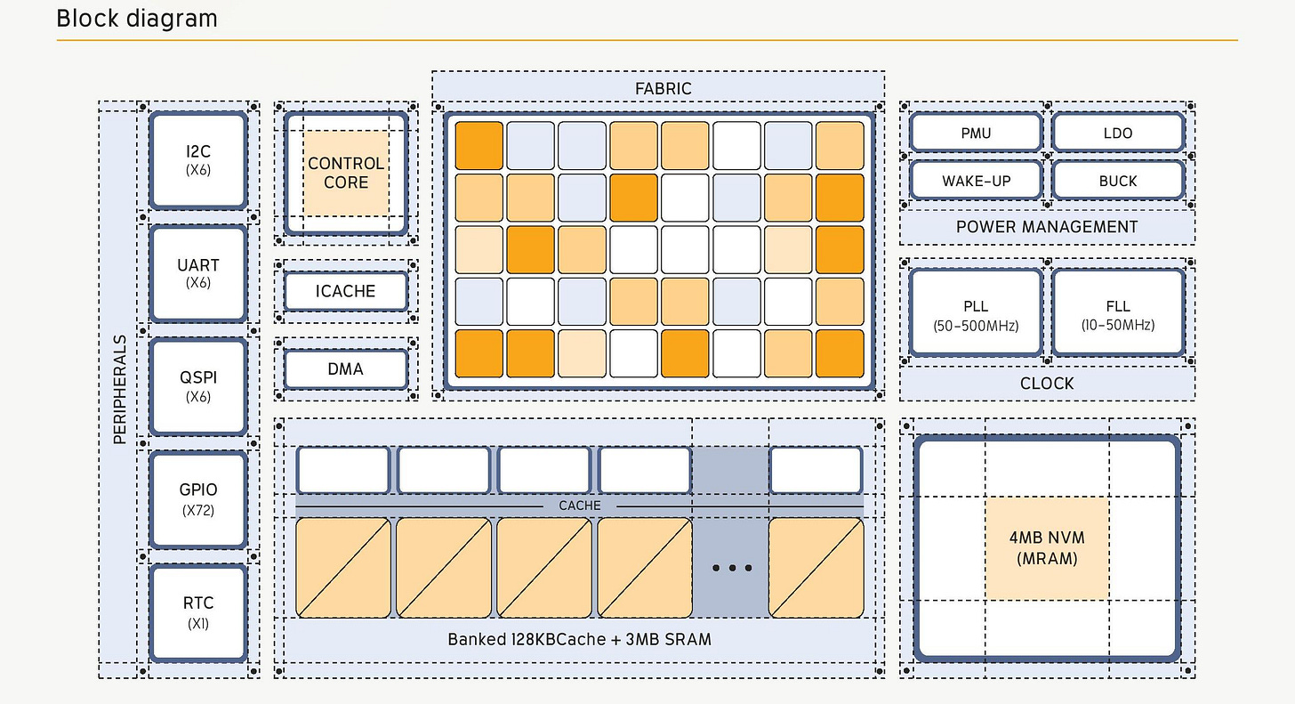 When most people hear "low power chip" or "embedded CPU," they think an in-order ARM Cortex-M or slightly above with something out-of-order in the architecture, paired with enough on-chip memory or some DRAM off-chip. The model is simple: a small processor fetching, decoding, ordering, scheduling, executing, then retiring pipelined instructions step-by-step, moving data to and from memory as need.